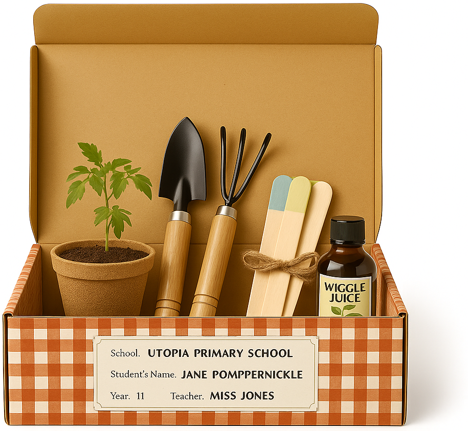 Each Class Project pack serves up to 24 students and includes everything needed for one class: teacher resources, A3 grid set, companion guide, stickers/labels, twine, stakes, mini tape, access to Hub, and: