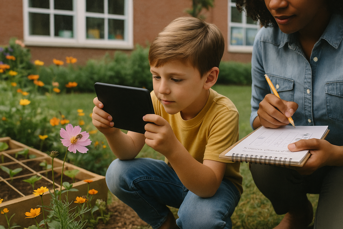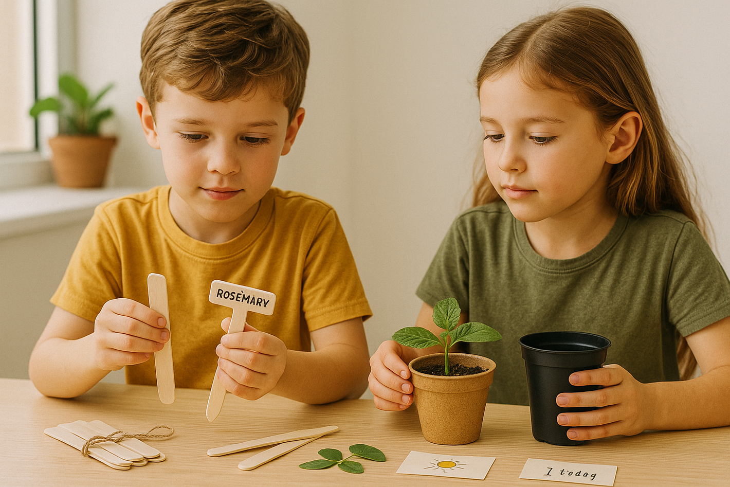 Students measure, record, and compare — discovering how sunlight, soil, and care affect growth.