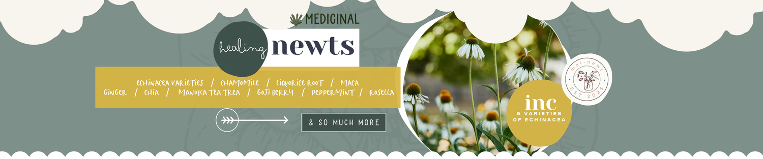 Our Medicinal plant & flower Newts are gentle healers,..... time honoured remedies with roots that run deep. From calming chamomile to conforting lavender, these newts carry stories older than a memory & softer than a whisper.